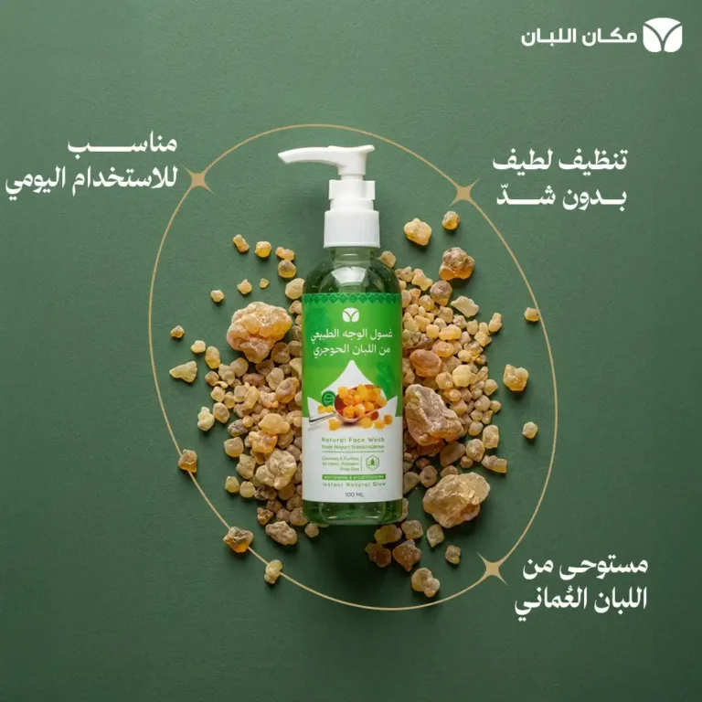 غسول للوجه يومي مصنوع من زيت اللبان الحوجري العُماني، مخصّص لتنقية البشرة بلطف والحفاظ على توازنها الطبيعي دون مبالغة أو قسوة.